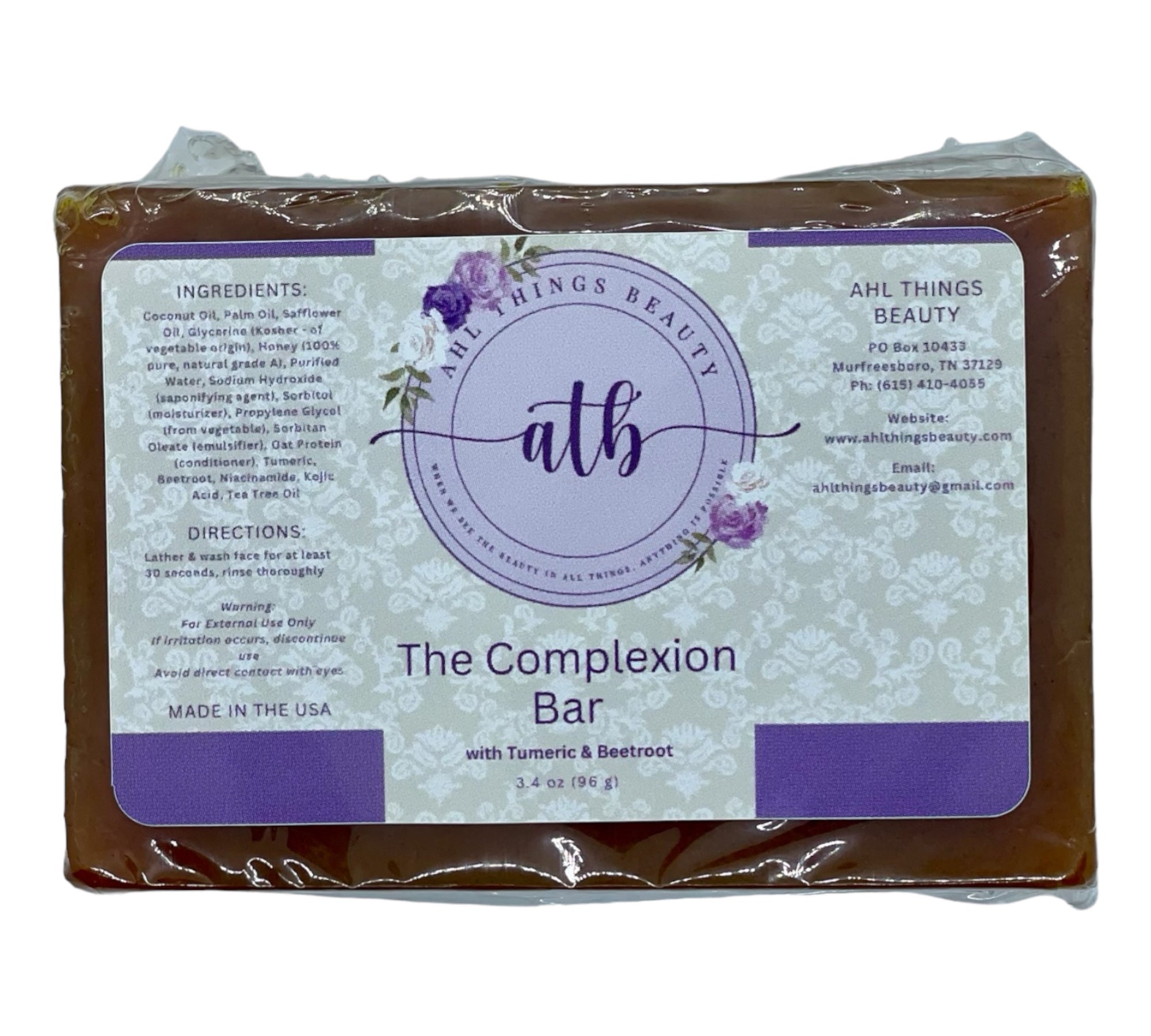Our complexion bar enriched with the powerful benefits of turmeric and beetroot. Harnessing the natural goodness of these ingredients, our complexion bar gently cleanses while promoting a brighter, more even skin tone. Turmeric, known for its anti-inflammatory and antioxidant properties, helps to reduce redness and blemishes, while beetroot provides a natural source of vitamins and minerals to nourish and revitalize your skin. Pamper yourself with the indulgent lather of our complexion bar and unveil a radiant, glowing complexion with every wash.
